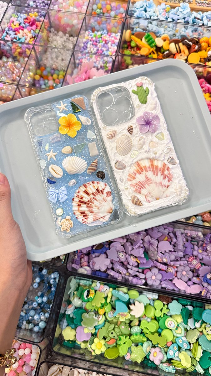 This is the home of “my phone case is not like yours”. Go bold, go cute, go beachy, go chaotic in the best way. You can decorate phone cases and pencil cases with textures, colours, and playful details that turn everyday stuff into something you actually want to show off. It is custom, it is hands on, and it is oddly satisfying.